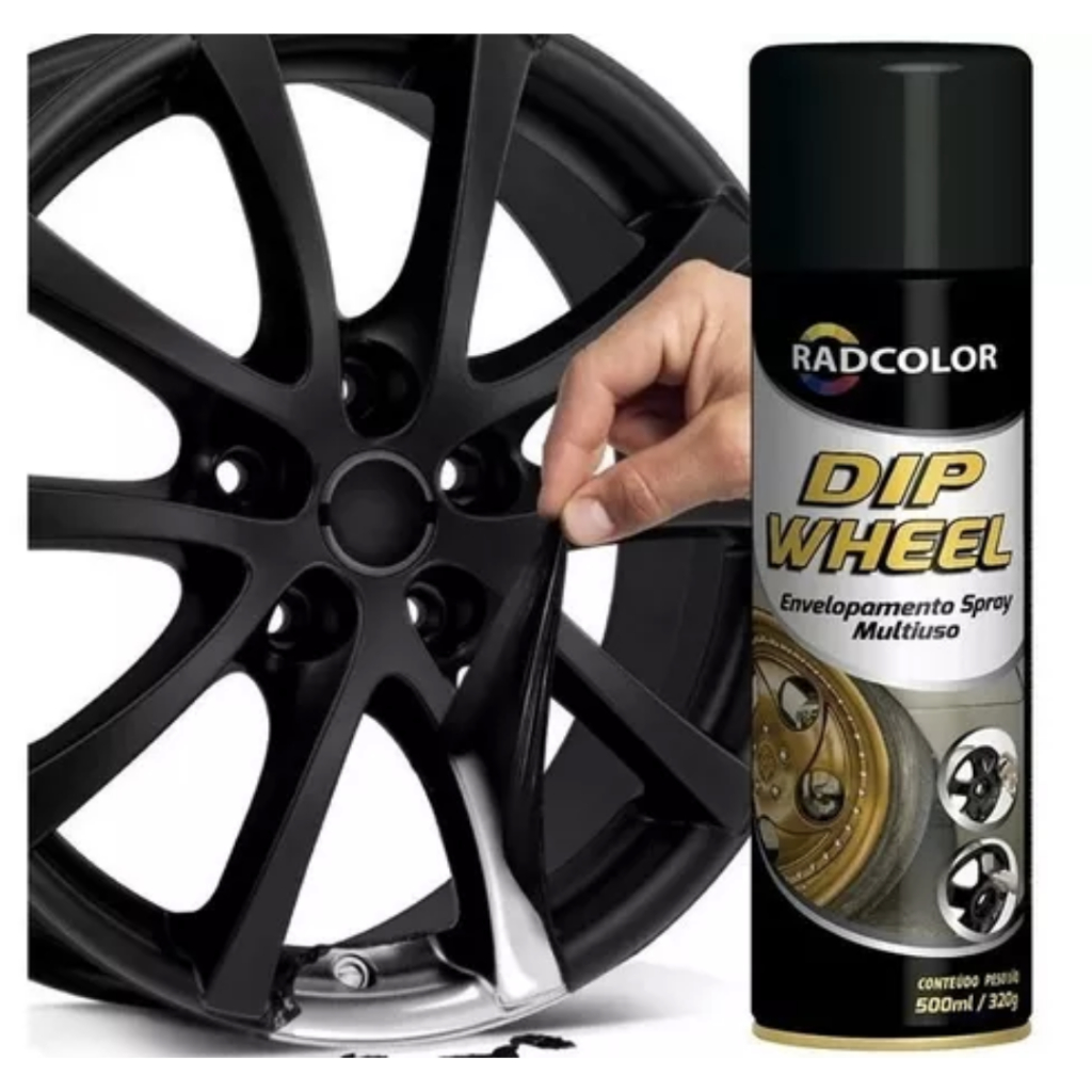 Spray de Envelopamento Liquido Dip Wheel Preto 500ml - Radcolor - revestimento e de rodas, forma uma película