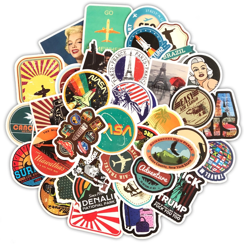 50pcs/pack Adesivos Retro Graffiti Travel Sticker Engraçado Para Bagagem De Mala De Bicicleta Skateboard Decalque De Carro