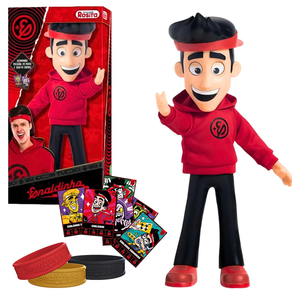 Boneco Original Enaldinho Youtuber 25cm Articulado Em Vinil Pulseira Do Poder Jogo De Cartas Rosita