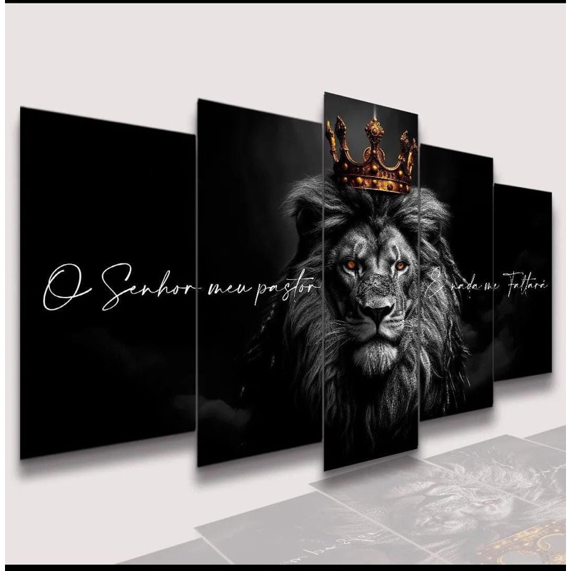 Conjunto Quadro Decorativo 200x100 Mosaico Leão Paisagem Frases Motivacionais Flores Abstrato Cristão Kit de Quadros Decorativos Conjunto Kit para Parede Sala e Quarto PVC Decoração para Sala Quarto