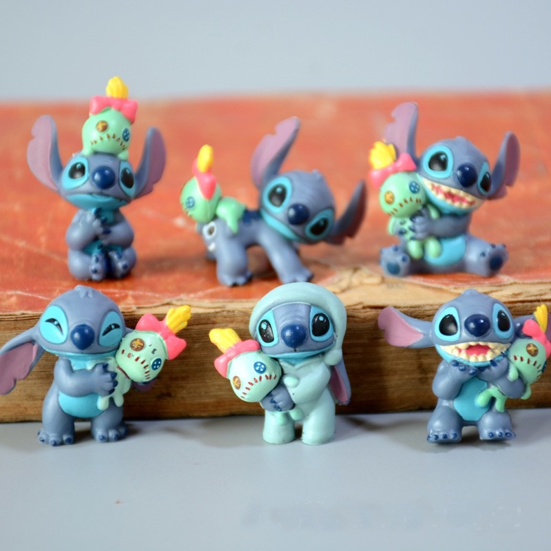 6PCS/SET Lilo Stitch Scrump Mini PVC Ação Figuras De Bonecas De Brinquedos Topper 2,5cm