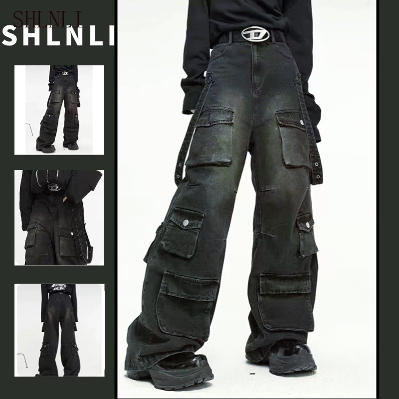 Calça De Rua Big Pocket hiphop Perna Larga Papai Jeans Primavera Verão Estilo