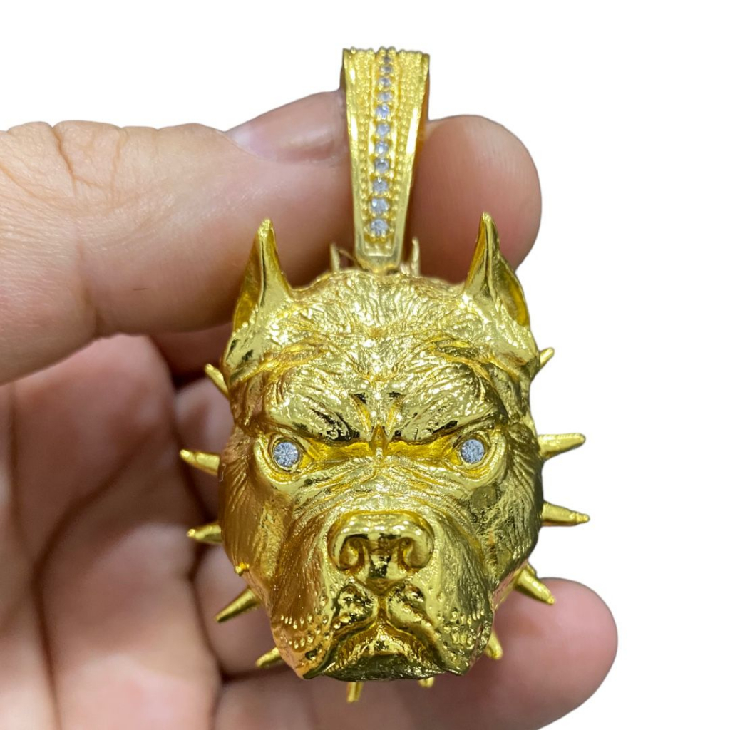 Pingente Masculino Pitbul Cravejado MOEDA ANTIGA Banhado a Ouro 18 K SOMENTE PINGENTE