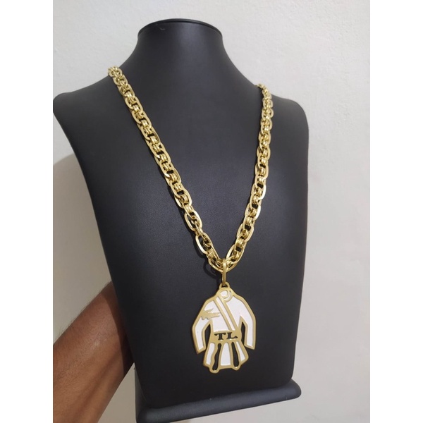 corrente imperador + pingente faixa preta de moeda antiga idêntico a ouro 18k