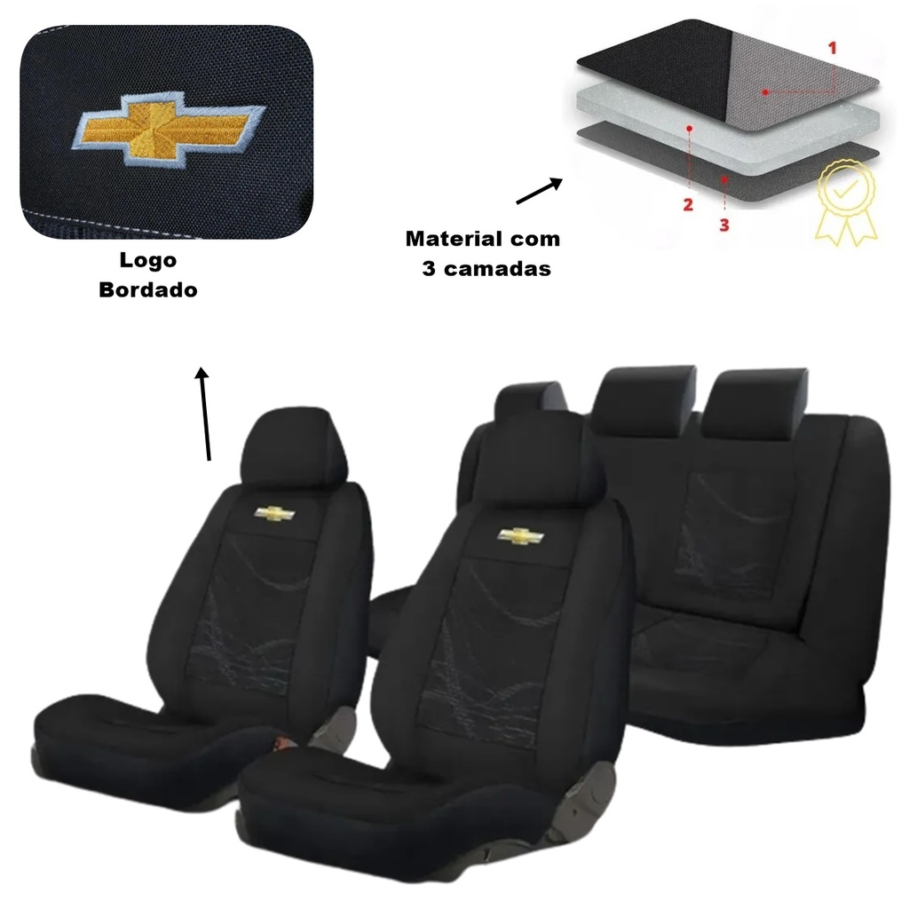 Capa De Banco Grossa Carro Chevrolet Tecido Original Automotivo Grosso + Capa de Volante e Lixeira Onix Prisma Celta Corsa S10 Blazer Vectra Spin Astra Captiva Montana Ágile Monza Meriva Cobalt Sonic Kadet