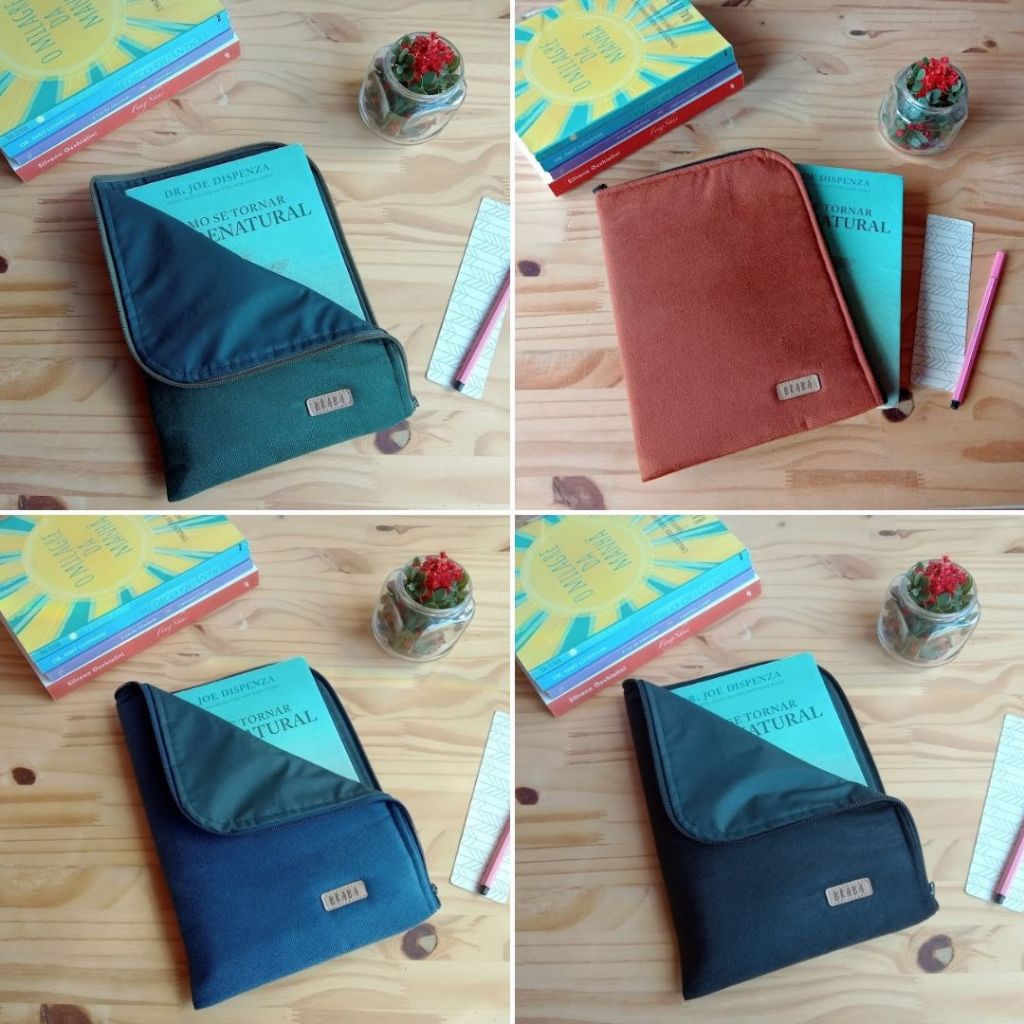 Capa Porta Livros Acolchoada de Tecido - Forro impermeável com Zíper