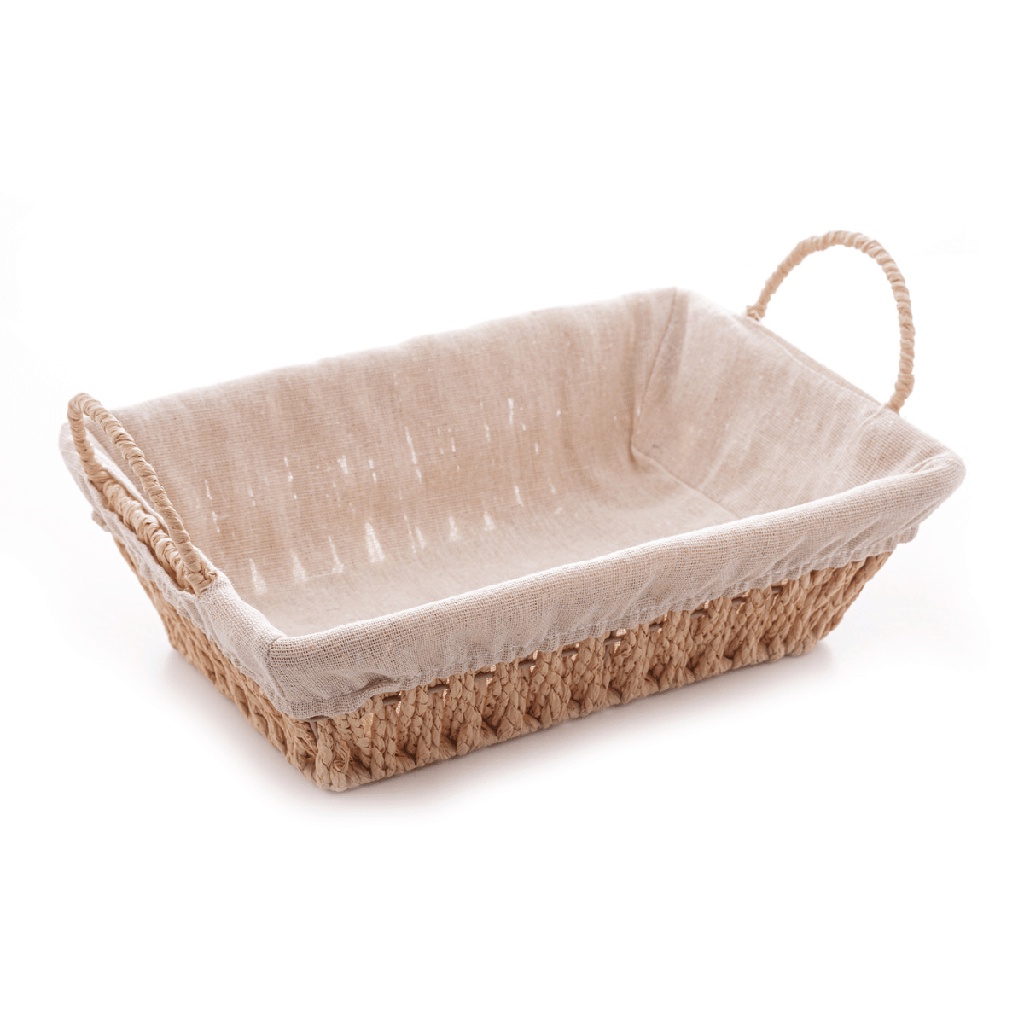 Cesta Retangular com Alça em Papel e Forro em Tecido Wolff Organizador Porta Pão Mesa Posta Bege Café