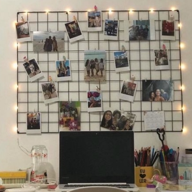 Memory Board Porta Fotos Mural De Fotos ,Tela, Grade Aramada 30x40cm, Painel De Foto Porta Retrato, Organizador, Quadros, Quartos