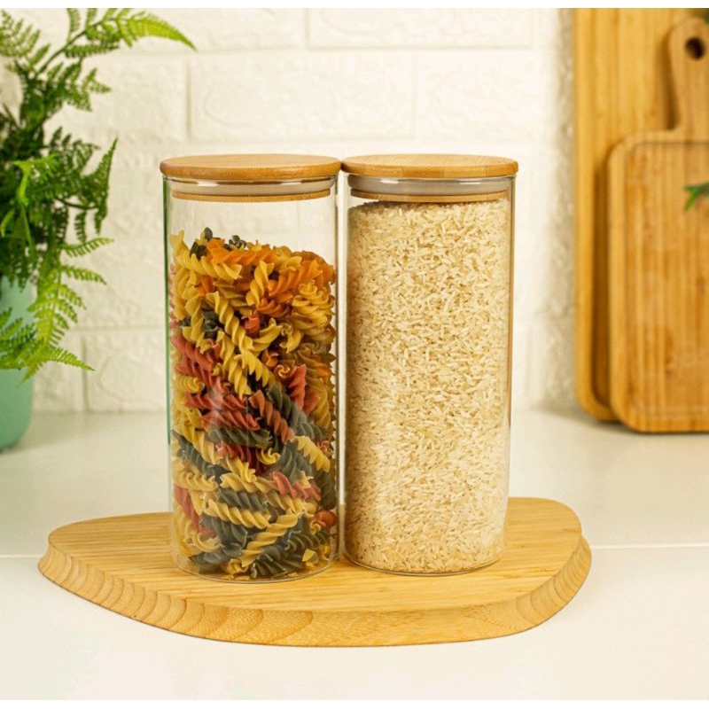 2 Potes Herméticos para Mantimentos com Tampa de Bambu 1,5L
