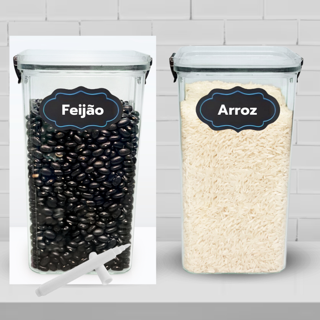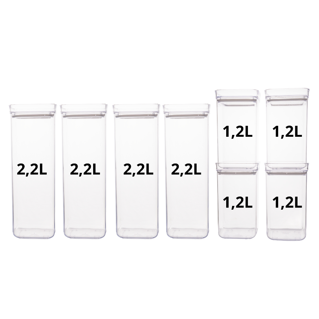 Conjunto 8 Potes Acrílico Cristal 2,2L 1,2L Herméticos BPA Free Para Mantimentos, Alimentos Cereais Empilháveis