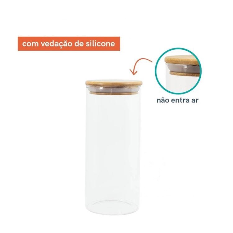 Pote Herméticos Redondos Para Mantimentos Com Tampa De Bambu 900ML e 1,7L