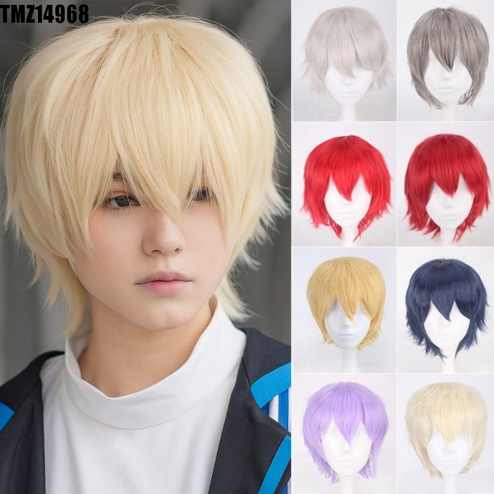 TMZ14968 Perucas De Cosplay De Anime , Cabelo Liso Curto Multicolorido Sintético , Masculinas Respiráveis Em Camadas