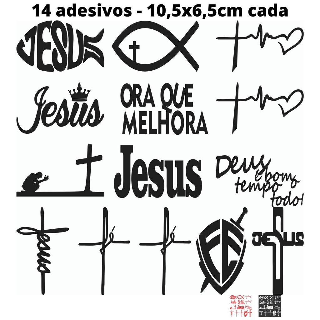 Adesivos Evangelico Gospel Kit C/14 Unidades Jesus, Fé, Cruz