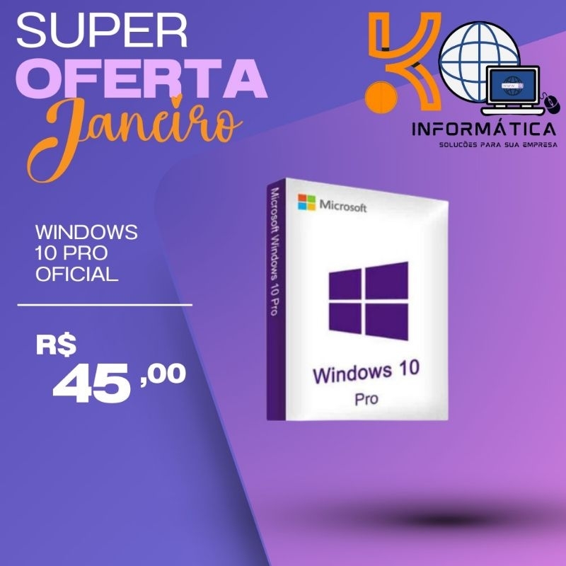 Licença Microsoft Windows 10 Pro 32/64 Bits - Chave Ativação Key Para 5 PC - Cartão Físico