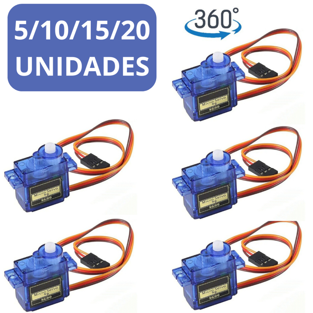 KIT 5 Micro Servo Motor SG90 360 Graus 1,6 kg +Acessórios Mini RC Car Drift, Aeromodelo, Helicóptero