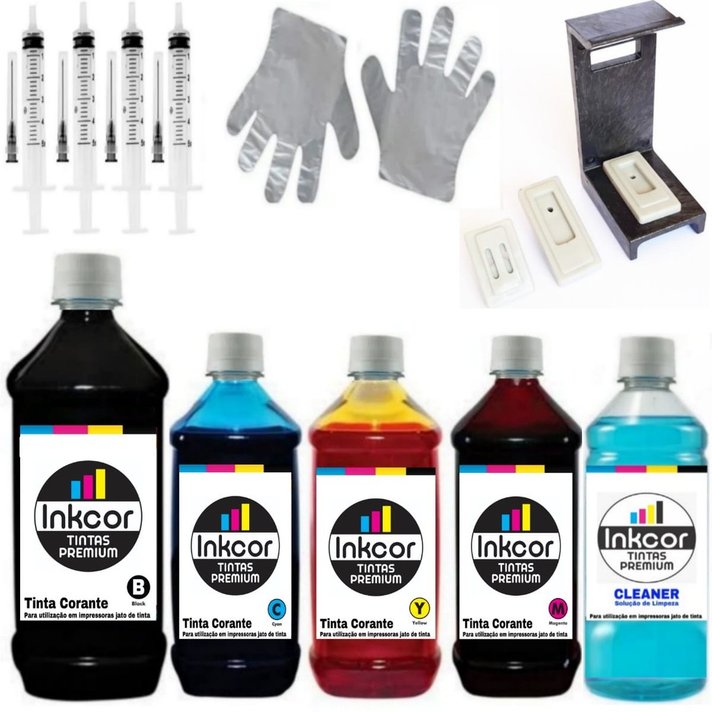 Kit Completo Tintas Inkcor e Acessórios para Recarga De Cartuchos Impressora Compatível com HP 662 664 60