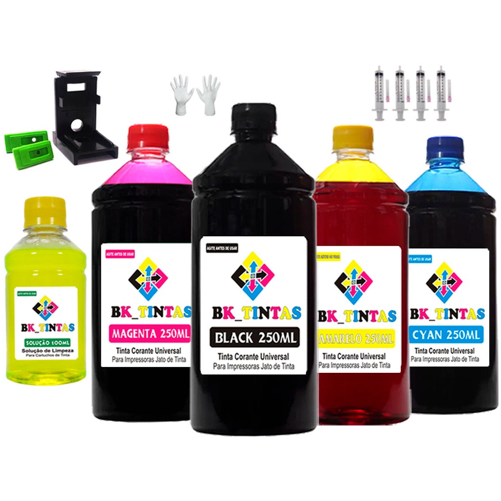 Kit Tinta BK Recarga De Cartuchos Compatível com Impressora HP 667 662 664 122 60 901 74 75 92 21 Snap Fill
