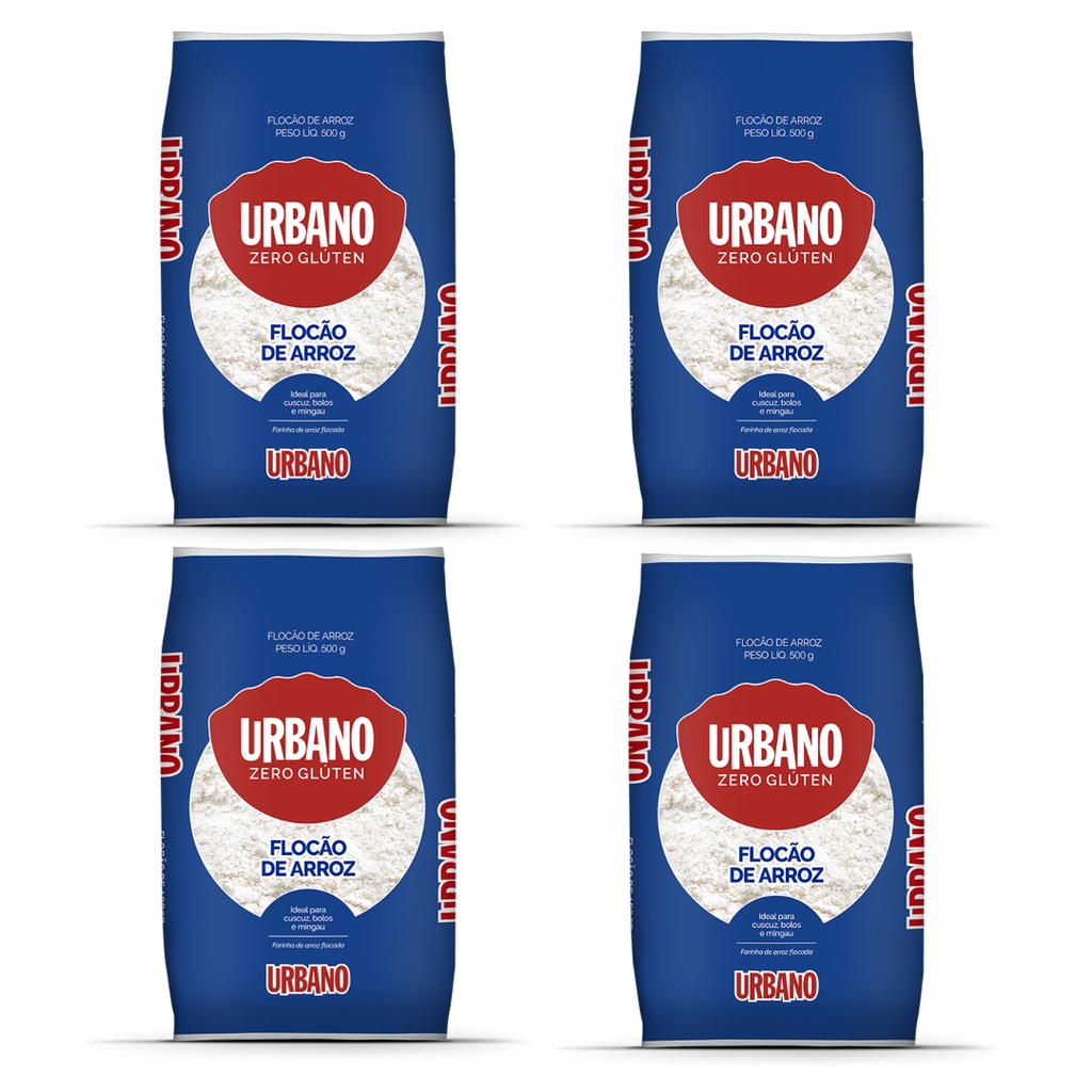 Flocão de Arroz Sem Glúten Urbano - 2 kg KIT (04 x 500g)