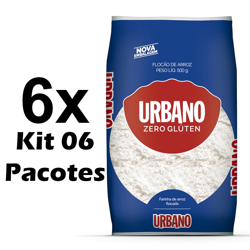 Flocão De Arroz Sem Glúten Urbano - Kit 06x Pacotes 500g