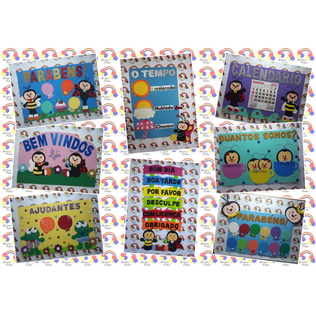 Conjunto de Painel Escolar para sala de aula em eva material pedagógico - Jardim Encantado