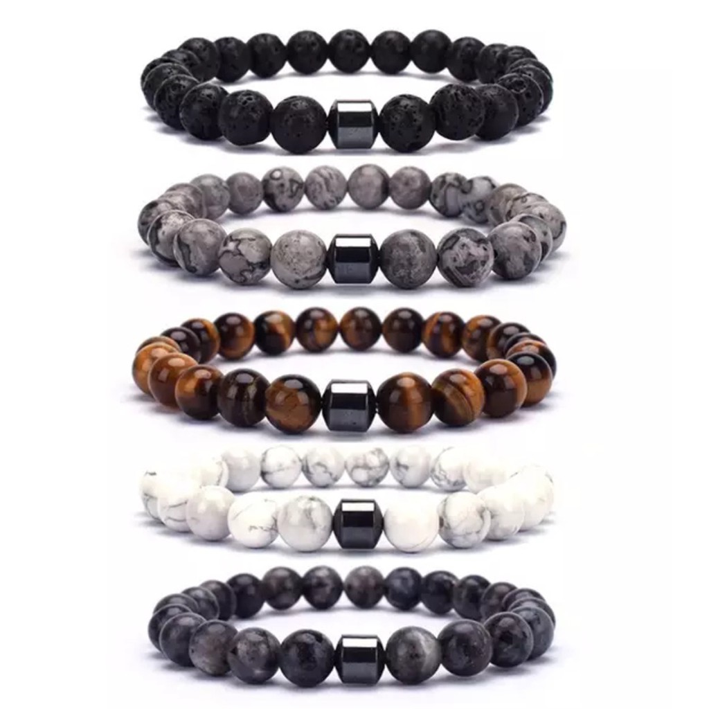 Pulseira Onix Masculina Pedra Natural Pulseira Hematita 8mm