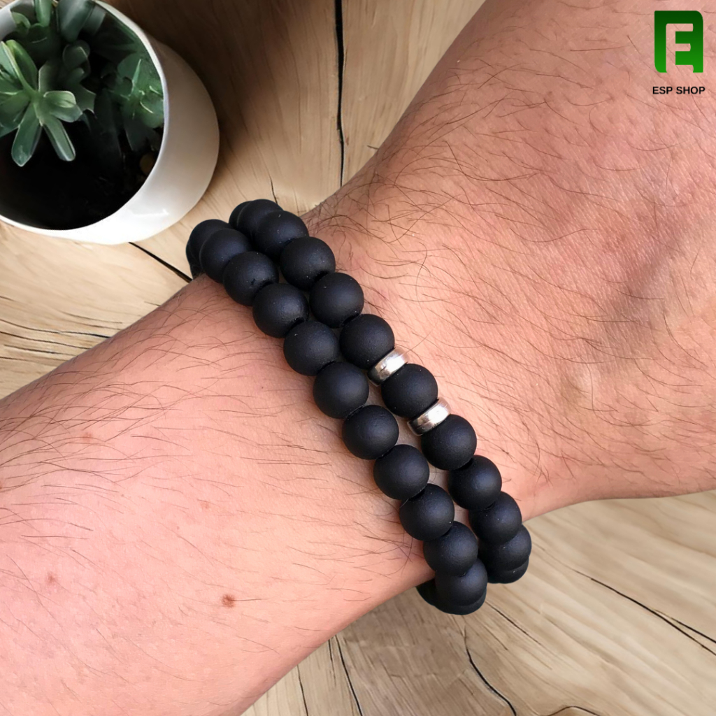 Kit 2 Pulseiras Masculina Feminina Unissex Pulseira Madeira Preta Fosca Pedra Natural
