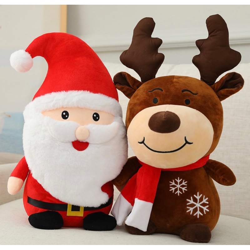 Boneco de Natal Pelúcia Papai Noel e Rena 20CM