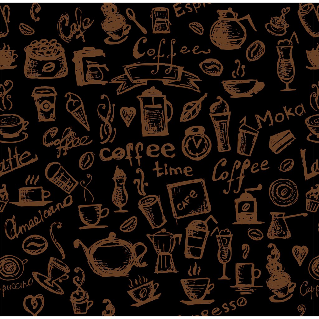 Papel de parede cozinha cafeteria café fundo preto desenhos bege adesivo