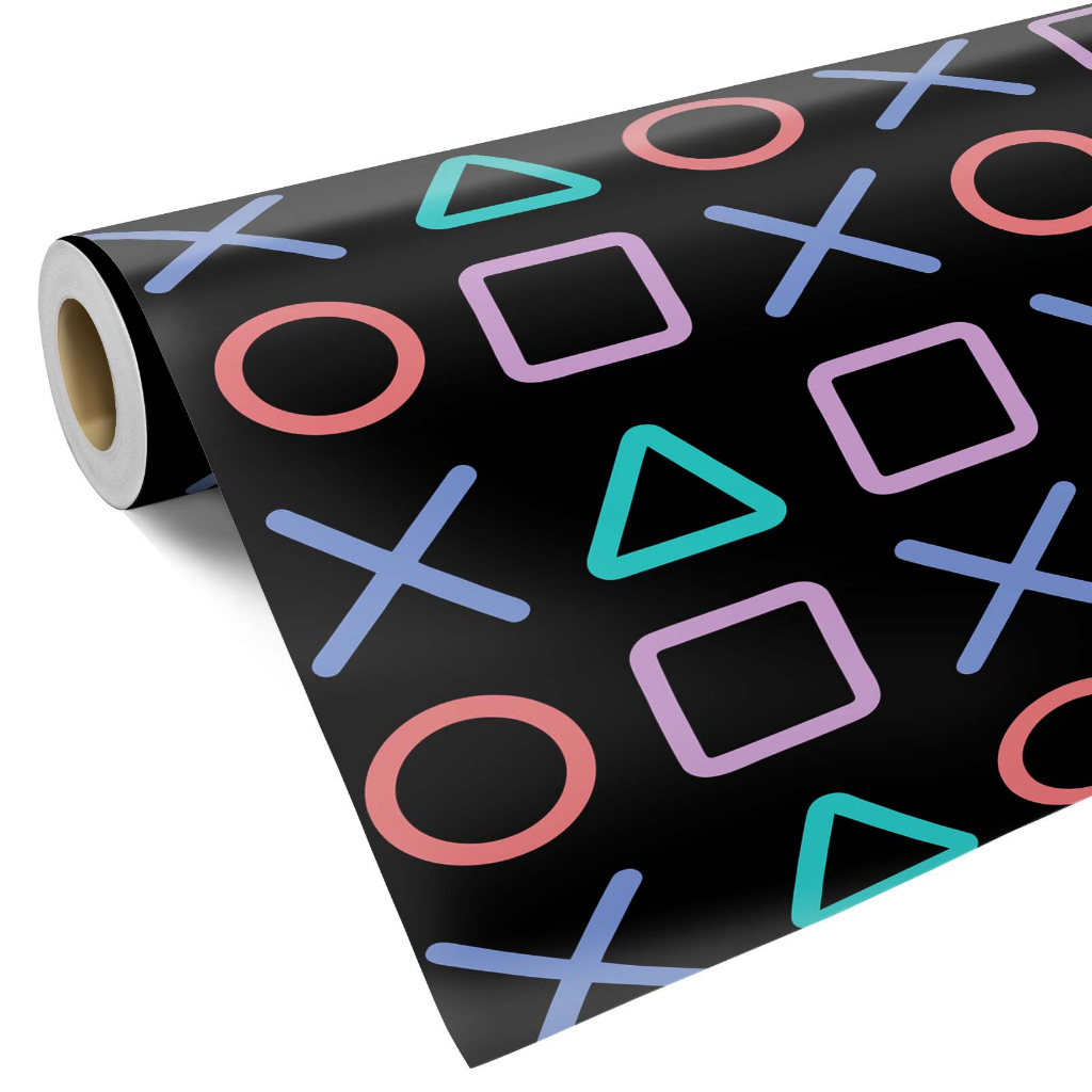 Papel De Parede Adesivo Lavável Botões PS4 Com Fundo Preto Quarto e Sala Gamer - Pro Decor