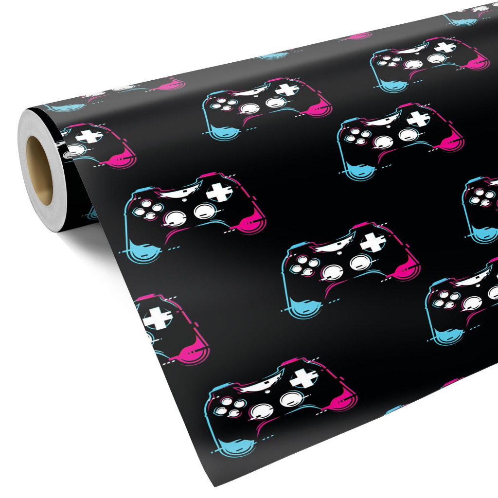 Papel de Parede Adesivo Gamer Fundo Preto Controles Coloridos 3,0m