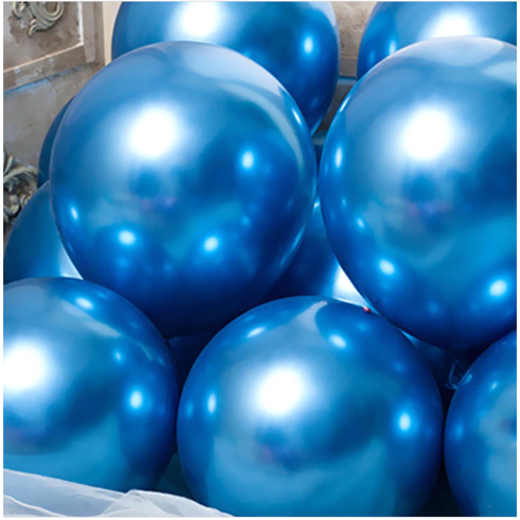 25 Unid Balão Bexiga 5 Pol Azul Cromado Metalizado Alumínio Platino