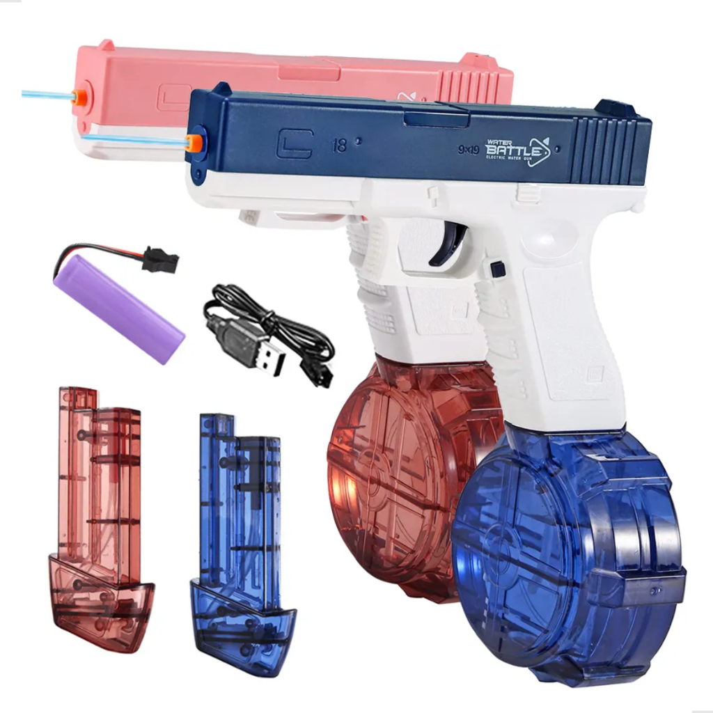 Pistola Glock Arminha de Água Brinquedo Automática Lançador Alta Pressão com Reserv Grande Elétrico