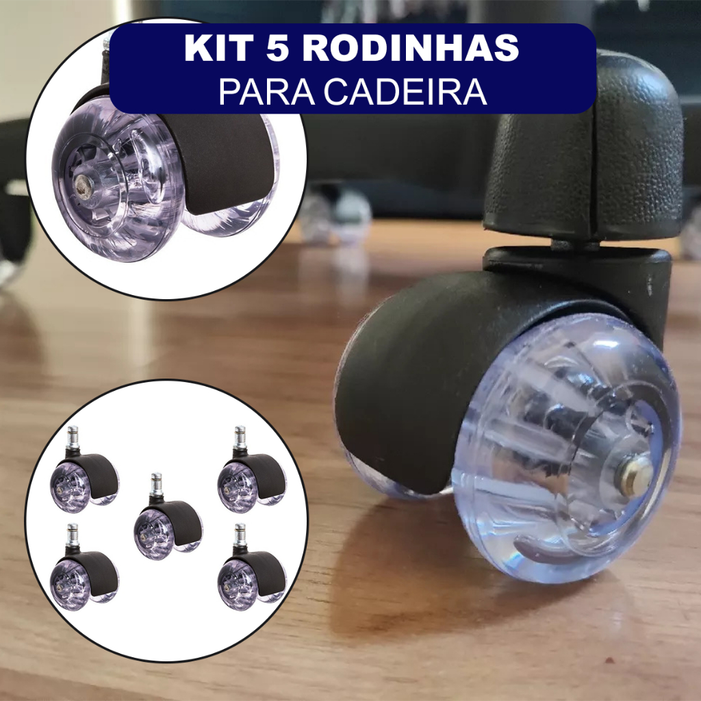 Kit 5 Rodinhas Para Cadeira De Escritório Silicone Pino 11mm