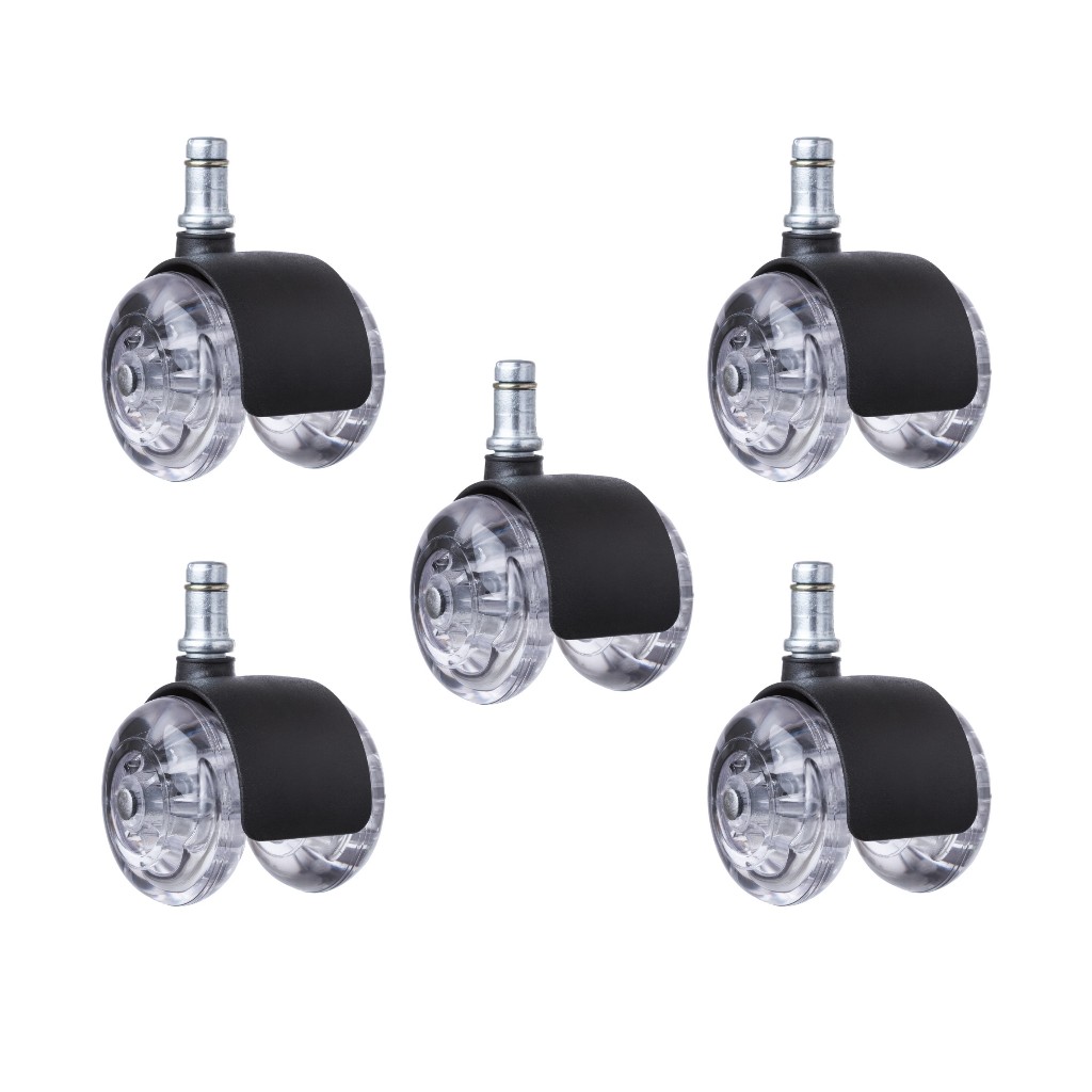 Kit 5 Rodízios Rodinhas Cadeira de Escritório ou Gamer Silicone Anti-Risco e Ruído com Pino 11mm