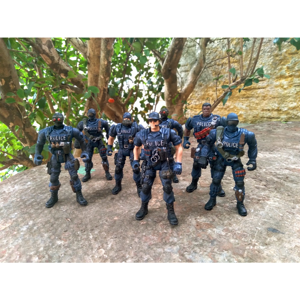 Coleção 7 bonecos Action Figure Swat Soldier Force tipo Comandos Chap Mei - Anos 90