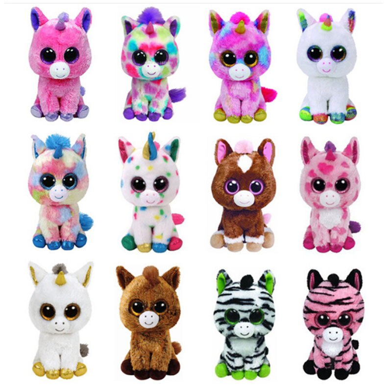 25CM TY Beanie Boos Olhos Grandes Cor Unicórnio Branco Série Zebra Cabra Boneca De Pelúcia Coleção De Brinquedo Menino Menina Aniversário De Natal