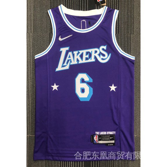 2022 Novos 3 Estilos Camisa Da NBA Los Angeles Lakers 6 # LeBron James Roxo 75 Aniversário Do Basquetebol