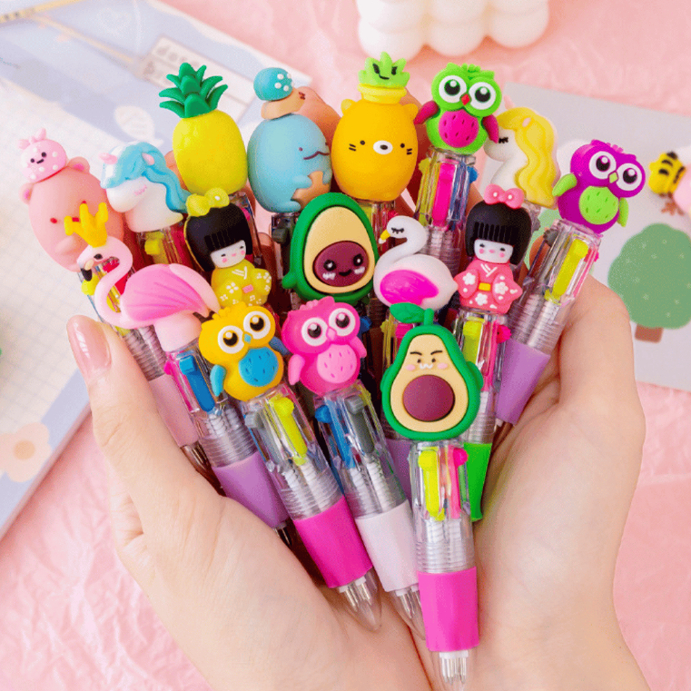 4 Cores 1/2/3/4 Pçs Mini Caneta Esferográfica com 3D Tampa 4Em 1 Estilos Sortidos Varias Completo