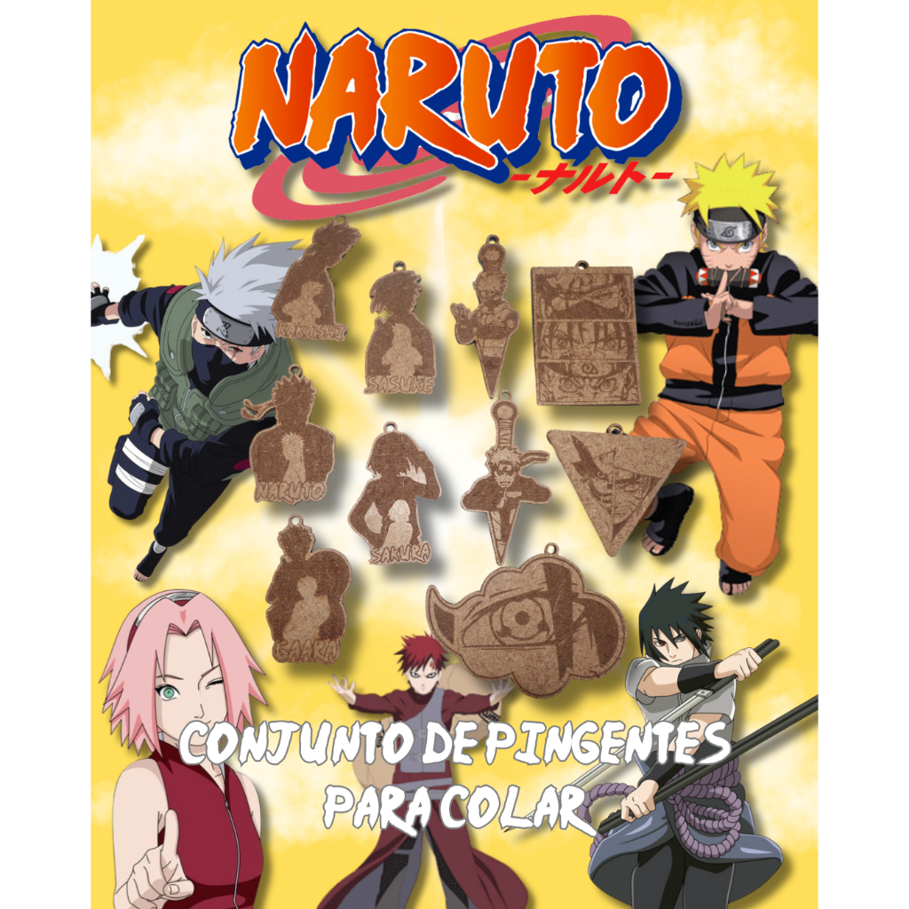 Conjunto de 10 Pingentes para Colar do Anime Naruto em MDF Gravados a Laser - Coleção Exclusiva