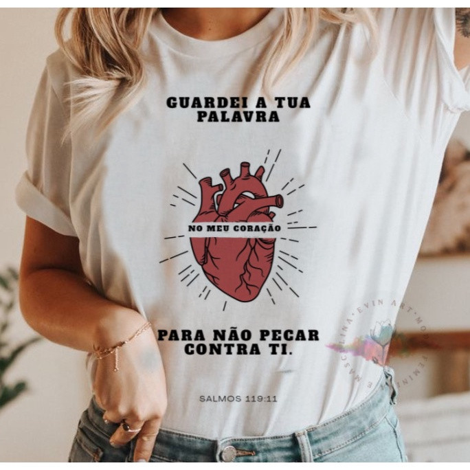 Blusa T-shirt Guardei Tua Palavra Em Meu Coração Moda Evangélica Tumblr Casual