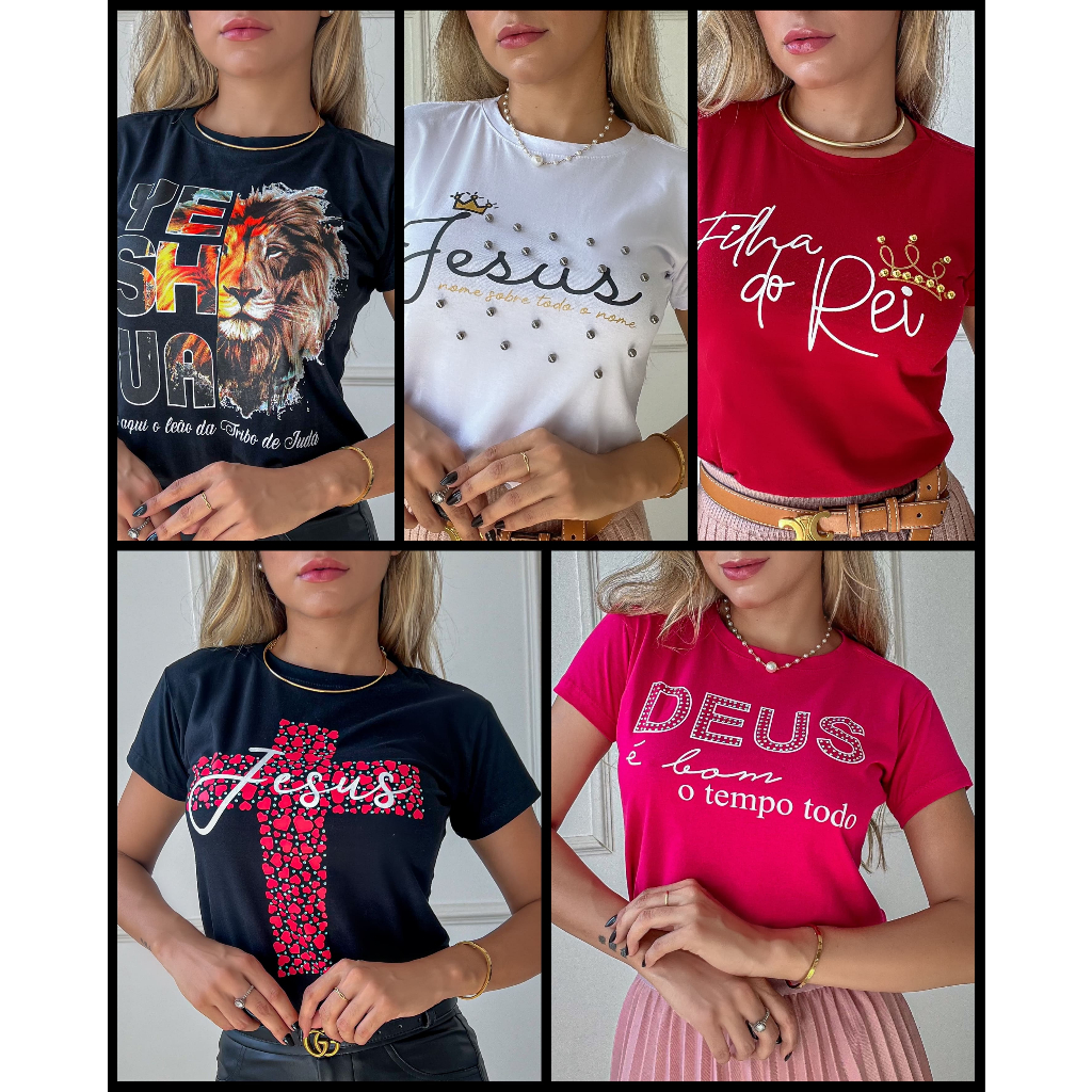 Blusa t shirt feminina moda evangélica LEÃO DE JUDÁ YESHUA algodão ombro a ombro