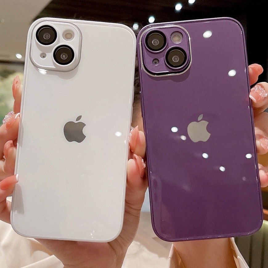 9H Vidro Temperado Capinha De Celular Para iPhone 13 14 Pro Max 11 12 Macaron Cor Liquida Capa 14 Plus Anti-Impacto