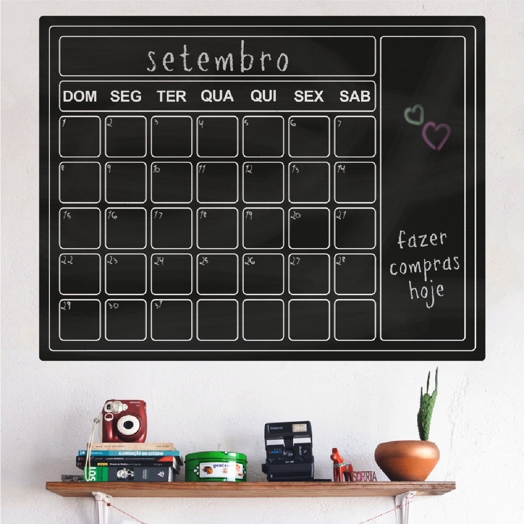 Kit 2 Lousa Calendário Adesivo Quadro Planner Mensal Semanal