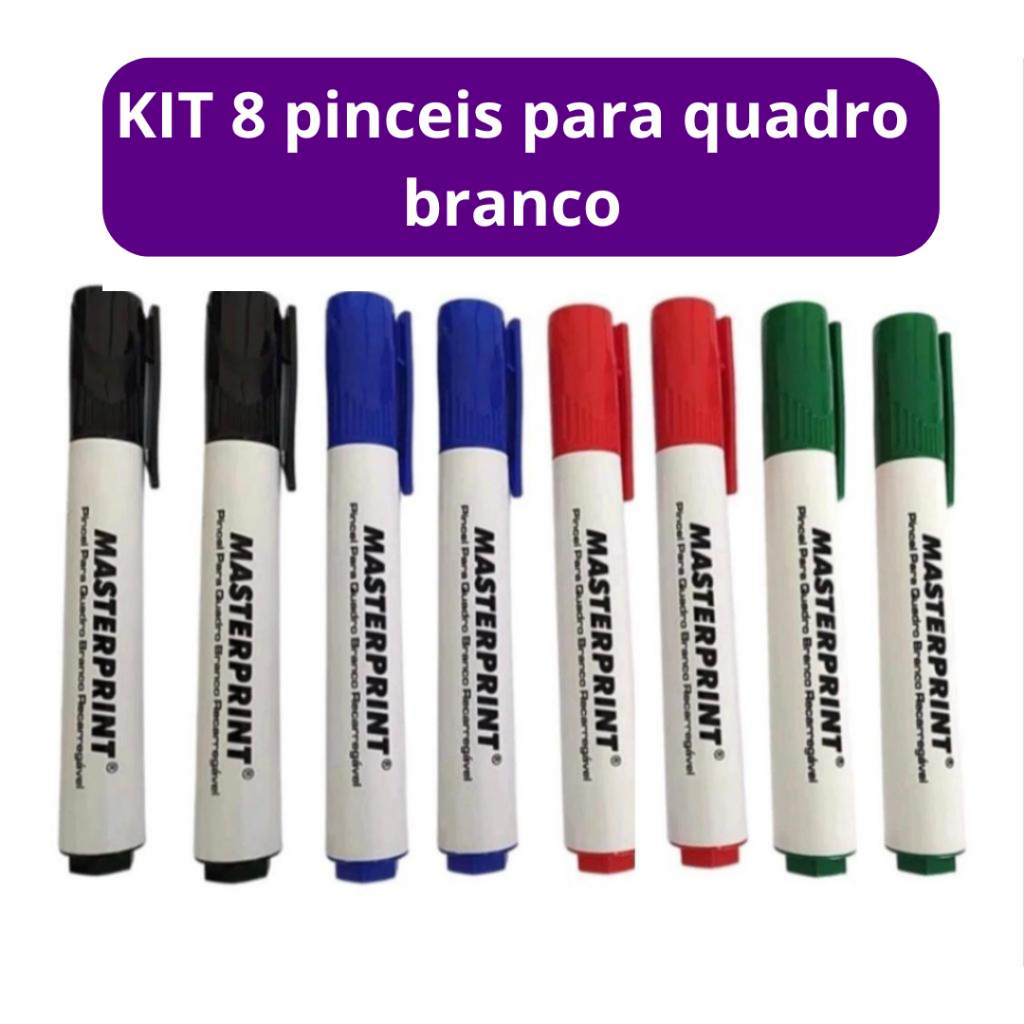 Kit 8 Pincel Quadro Branco Cores 2 Azul 2 Preto 2 Vermelho 2 Verde Pinceis Recarregável Masteprint
