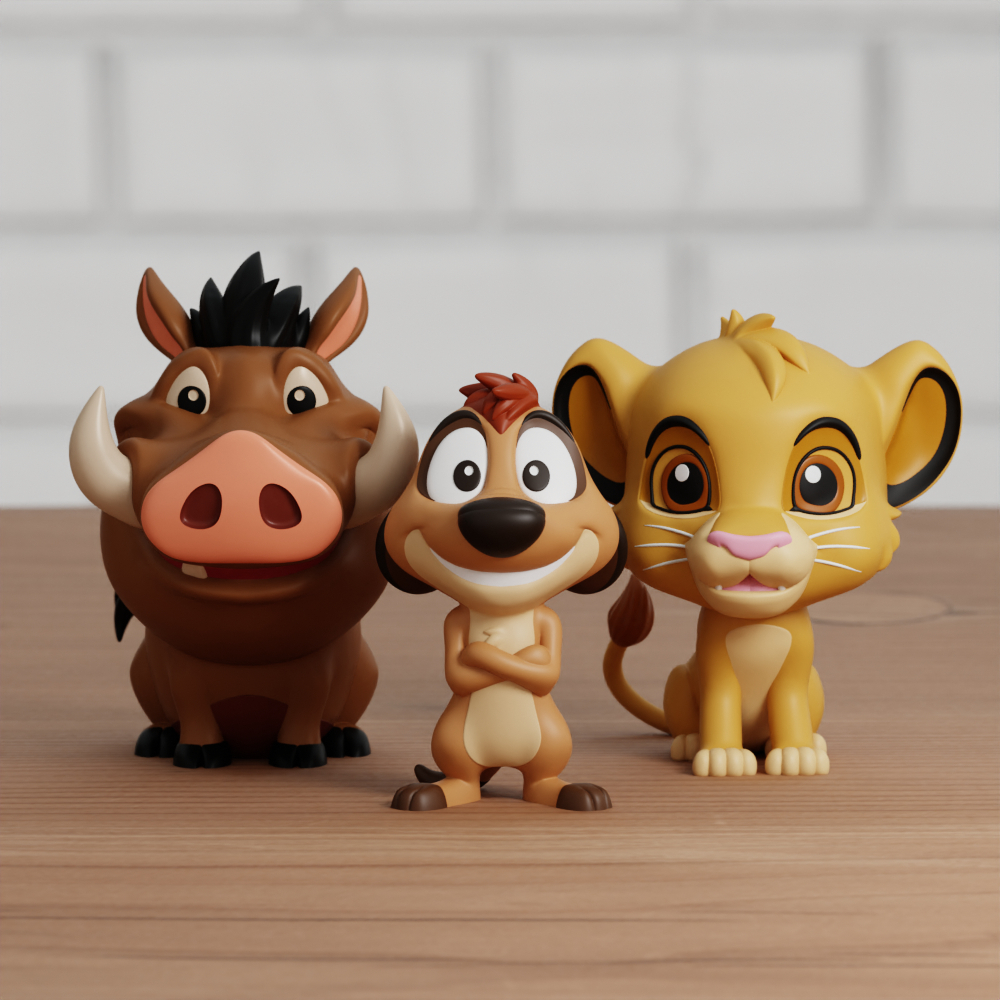 miniatura action figure rei leão timão e pumba - boneco colecionável rei leao timao e pumba e simba disney 10 cm