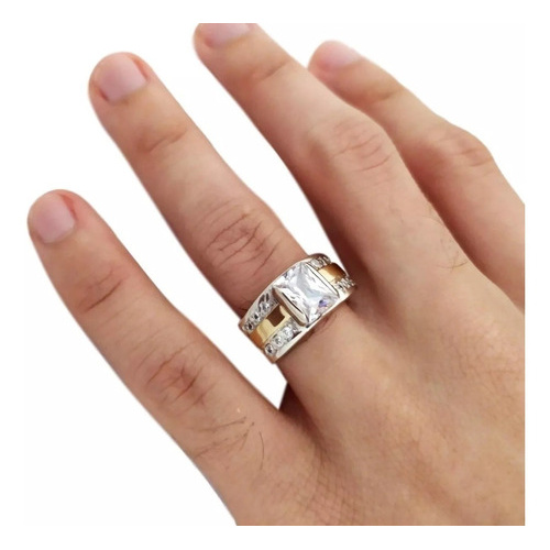 Promoção Anel Masculino Prata 950 Maciça E Apliques Em Ouro