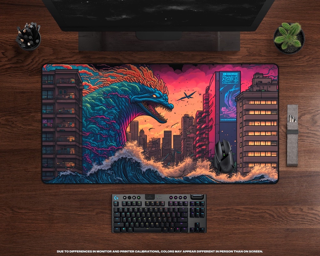 Blue Waves Monster Desk Mat-Tokyo Skyline , Anime , SciFi , XL Gaming Mouse Pad , Big Gamer Para , Acessórios De Escrivaninha Fria
