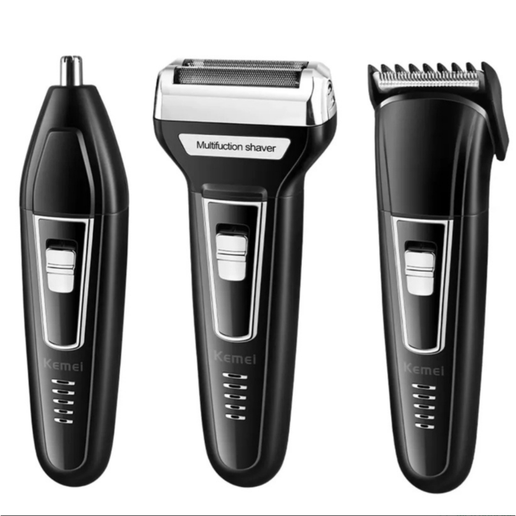 Aparelho De Barbear Depilador Elétrico Kemei KM-6558 3 Em 1 - Recarregável