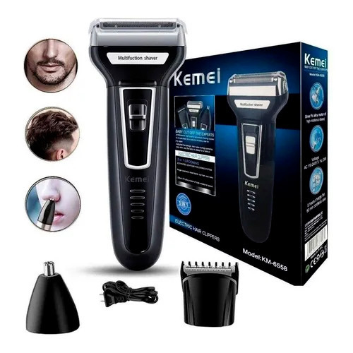 Aparelho de barbear 3 em 1 Kemei KM 6558 Recarregável Bivolt Preto