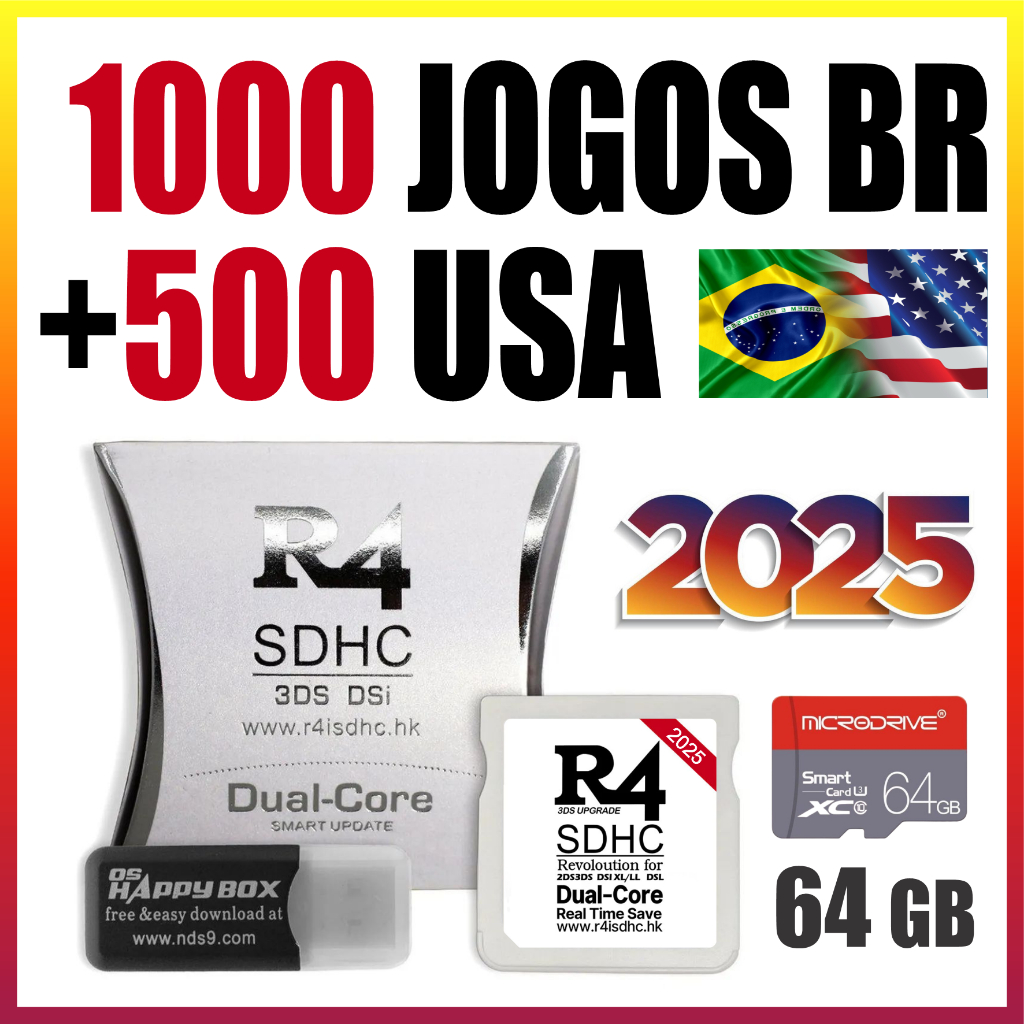 Cartão R4 2025 64gb - 1500 Jogos (BR e USA) - Nintendo 3DS, 2DS, DS, DSi - Novo, Pronto para Uso